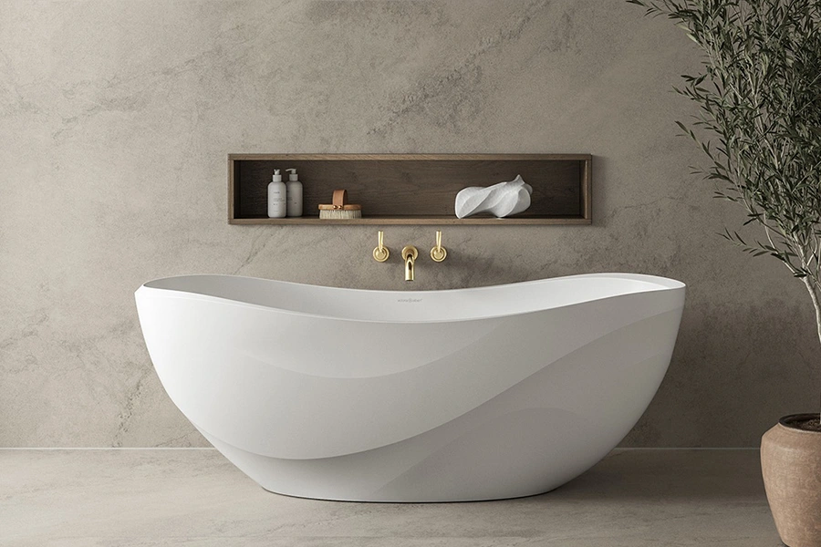 Banheiras e lavatórios com design premiado, fabricados no exclusivo e durável material QUARRYCAST®.